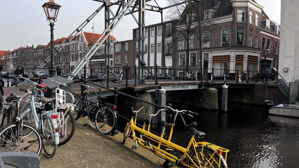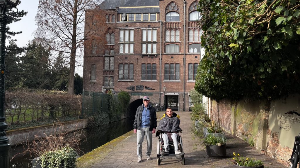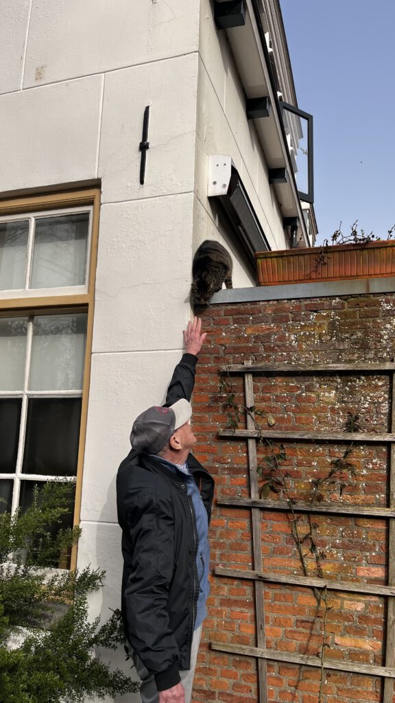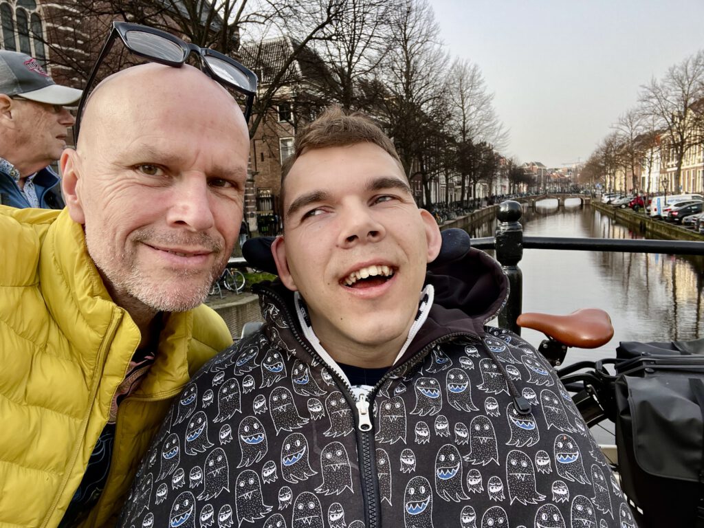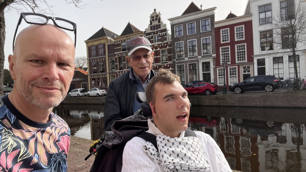 Mees en ik hadden we zin in. Onderweg reden we over de N11 langs de afslag van Boskoop en toen ineens kreeg ik een ingeving. Mees vond het ook een goed idee en zo pakte ik de volgende afslag en reed ik terug naar Boskoop. Mijn schoonvader Bert, die al bijna 83 is, woont daar met zijn vriendin. Gelukkig waren ze thuis. Bert lag even te rusten, maar sprong uit z’n bed en nog geen 10 min later waren we met z’n drieën onderweg naar Leiden.