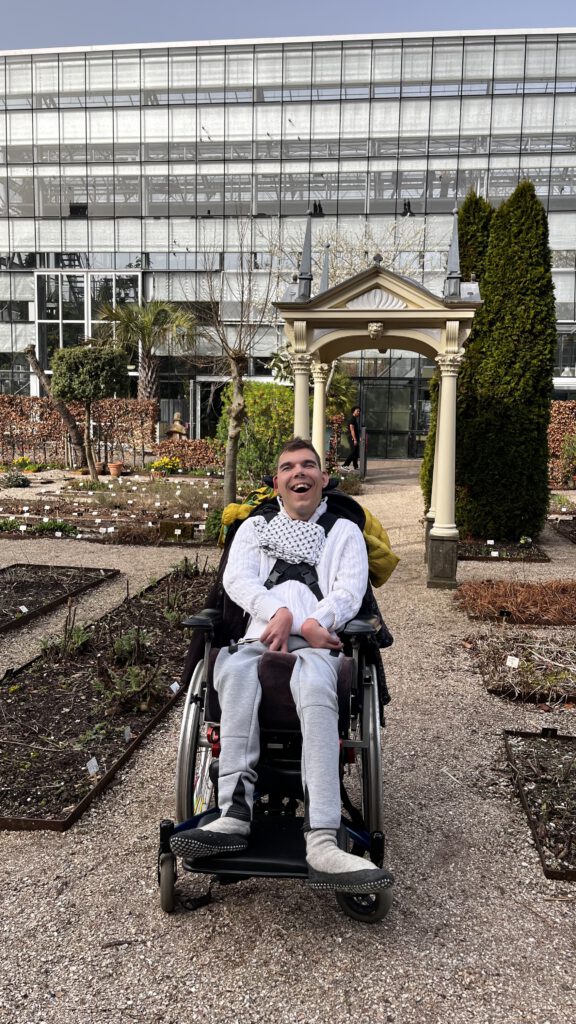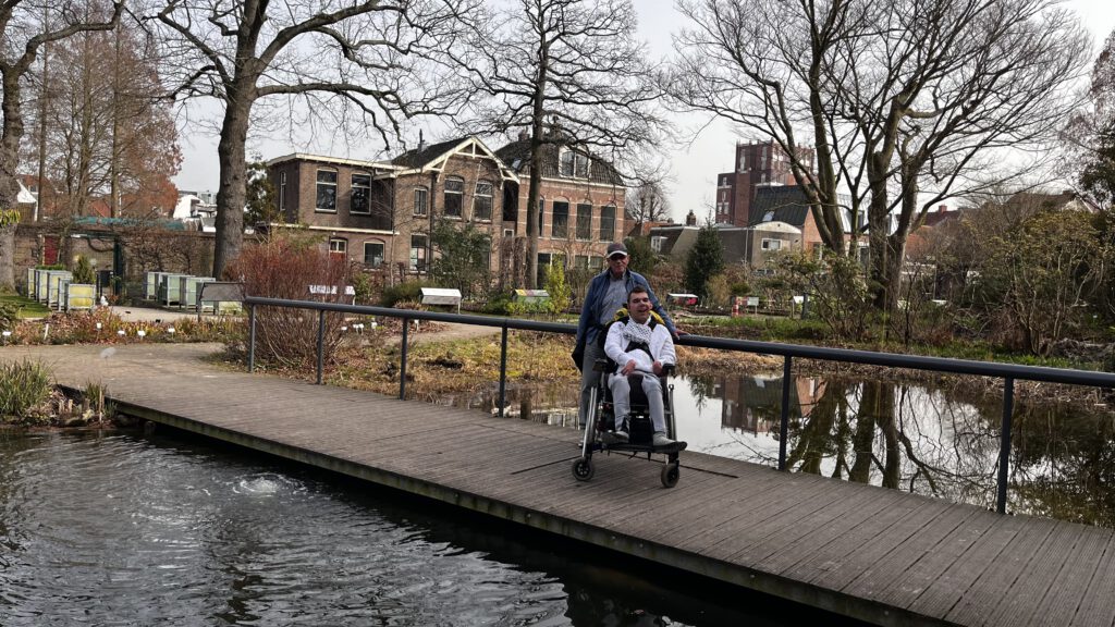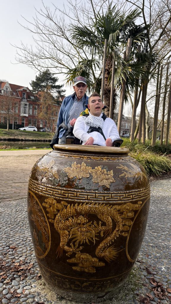 Het was een lenteachtige dag. Al gauw vond ik een parkeerplaats midden in de stad aan een gracht. Bert genoot ook van het uitje. Voor hem was het al weer een hele tijd geleden, dat hij in de Hortus was. Een hele fijne plek om te zijn. Mees keek zijn ogen uit en zijn oren registreerde veel vogelgeluiden. Heel af en toe nieste en hoestte er iemand en dat was natuurlijk ook heel leuk.