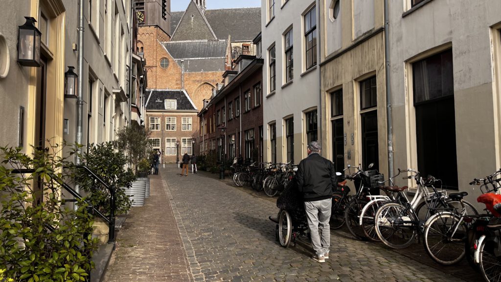 Vlakbij de Hortus zit een grote universiteit en blijkbaar werd er op deze dag het diploma of zoiets uitgereikt. Er liepen veel studenten in dezelfde mooie outfit rond met blije gezichten en terrassen zaten vol. Na het bezoek in de Hortus hebben we nog een stadswandeling gemaakt. Leiden is eindeloos mooi, vind ik althans. Vele oude straatjes met grote kerken en eeuwenoude panden. Bert kent de stad vrij goed en vertelde over de familiegeschiedenis in o.a. Leiden.